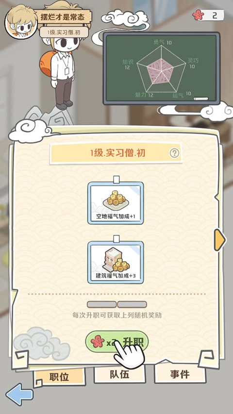 每次升职之后,玩家可获得随机奖励。