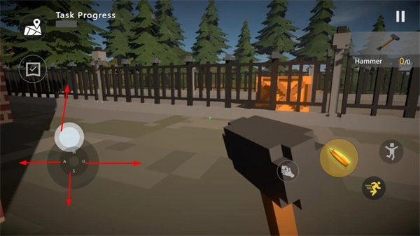 可以借助锤子之类的工具,对围栏、建筑这类物体进行破坏,界面会呈现Task Progress,用以记录任务的完成进度。