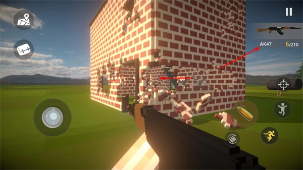 玩家还能运用AK47这类枪械,对brick建筑进行射击,以此造成大面积的破坏效果,从而推动游戏的进程发展。