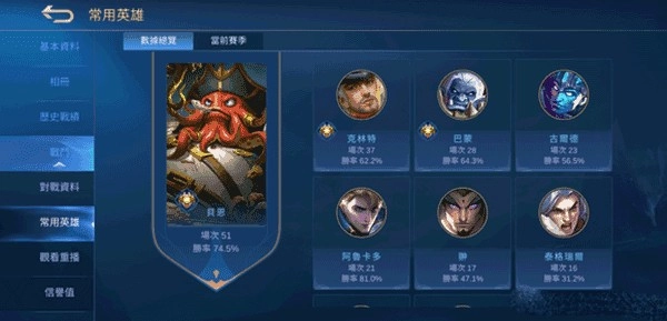 是时候给大家推荐一下我用来上分的主力英雄章鱼哥——贝恩了!在游戏前期大家都没什么金币去买强势英雄的时候,它刚好能派上用场。这个英雄操作起来很简单,强度也还不错,而且因为比较冷门,基本不会有人跟你抢位置。上中下野四个位置它都能打,就别问能不能打辅助了,虽说它有个控制技能,但用来打辅助实在太混了。