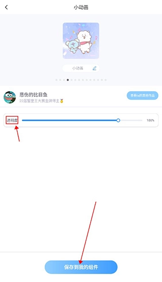 选择完成后,你可以对小组件的透明度进行设置,接着点击下方的“保存到我的组件”按钮,这样就能将其保存至我的组件库中了。