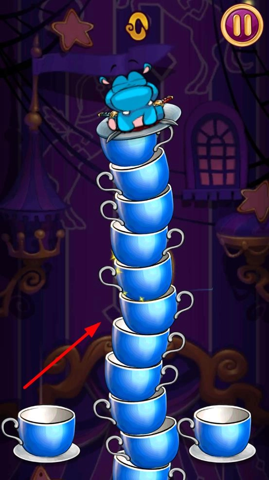 进入游戏后点击play按钮开始,仔细观察河马下方的杯子排列情况,然后通过消除相同的杯子让河马下落,在此过程中还要注意控制河马的平衡。