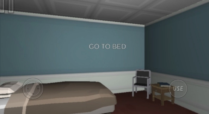 游戏包含多个不同的场景与章节,每个章节的房间布局和事件发展都各有特色。拿第一章来说,玩家刚进入房间时,收到的提示就是“GO TO BED”,指引着去睡觉。