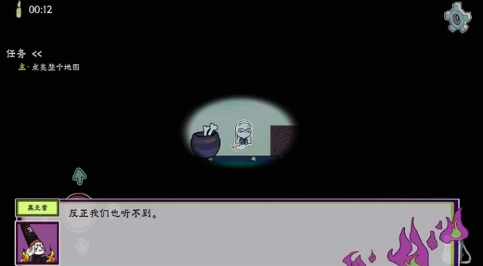 出生点摆放着一口炖锅与黑白无常,点击炖锅能获取“油”——这种材料是合成高级灯具的核心,同时也能借助炖锅来判断自己是否回到了出生点。