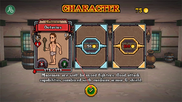 整体视觉采用复古像素风格打造,角斗士的造型、武器的外观以及竞技场场景,皆散发着浓郁的怀旧质感。与此同时,战斗细节得以清晰展现,使怀旧氛围与战斗体验完美融合,为玩家带来舒适的感受。