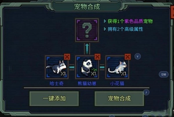 游戏里的宠物不仅能帮你捡垃圾,还可以成为属性的来源。你完全能把宠物看成一种特殊的装备。不同属性和功能的宠物能够帮助你在游戏中起到截然不同的作用。要是能够把这些不同宠物通过合成变成新的宠物不是很好吗?