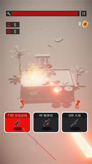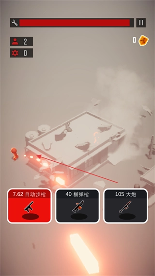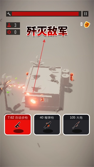 挑选7.62自动步枪、40榴弹枪、105大炮这类武器,向敌方目标展开进攻,歼灭那些红色小人敌人。