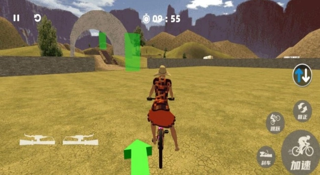 一般会通过虚拟摇杆或者按键来操控自行车的前进、后退、加速、刹车、转弯之类的动作。