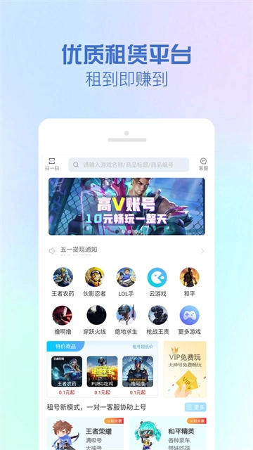 汇聚热门游戏账号租赁信息;