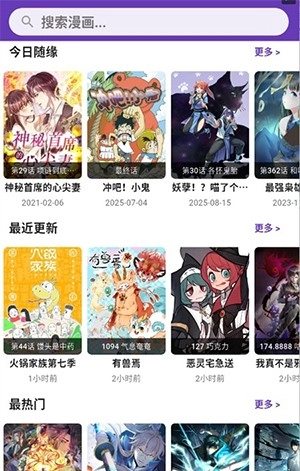 1、进入首页可以看到丰富的漫画资源,可以在搜索框输入关键词来搜索想看的内容。