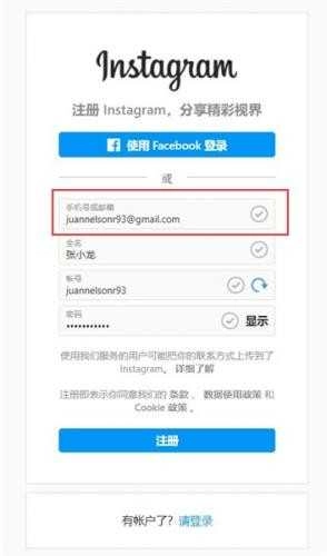 按照页面上的提示输入要求的信息,其中邮箱这一栏必须填写有效的谷歌邮箱地址,所有信息填写完毕后,点击“注册”按钮即可。