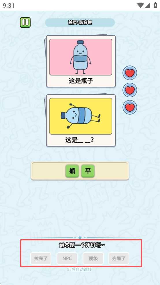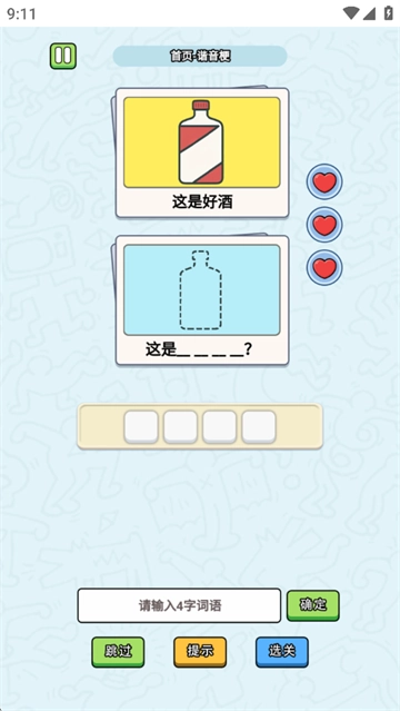 2、谐音梗小游戏十分有意思,如果实在想不出答案,可以点击提示