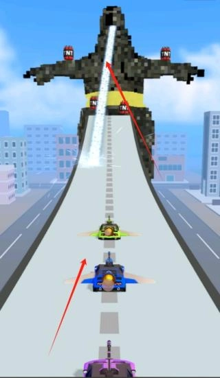2、多样的赛道场景:设计了城市废墟、荒野沙漠等不同主题的赛道,每条赛道都拥有独特的地形和机关。例如,在废墟赛道上,障碍物可以被撞碎以开辟新的路线;在工厂赛道中,传送带能够改变车辆的行驶方向。