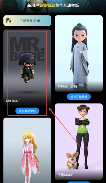 1、打开次元互动壁纸应用后,浏览各类形象并挑选出心仪的角色,点击该喜欢的形象,选择“设为互动壁纸”选项,即可启动设置流程。