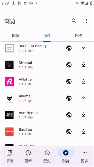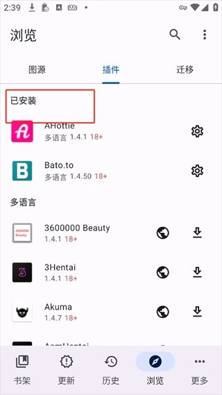 Mihon本身并不提供漫画,而是通过安装插件的方式从不同图源获取漫画,因此我们需要先安装插件,