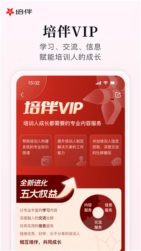 2026年,培伴VIP迎来全新升级。我们将从“学习服务、信息服务、交流服务”三大维度出发,为培训人匹配六大专属权益,助力其搭建系统的专业知识框架,增强制定培训解决方案的核心能力。同时,我们也期待与广大培训人携手,共同打造一个高效获取信息、深度互动交流的专属社群生态。