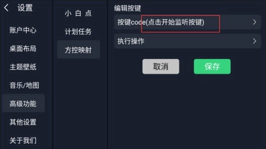 3. 开启日志监听模式,操作步骤如下:依次点击桌面的“设置”,进入后选择“高级设置”,接着找到“方控映射”,最后将图1对应的开关打开。