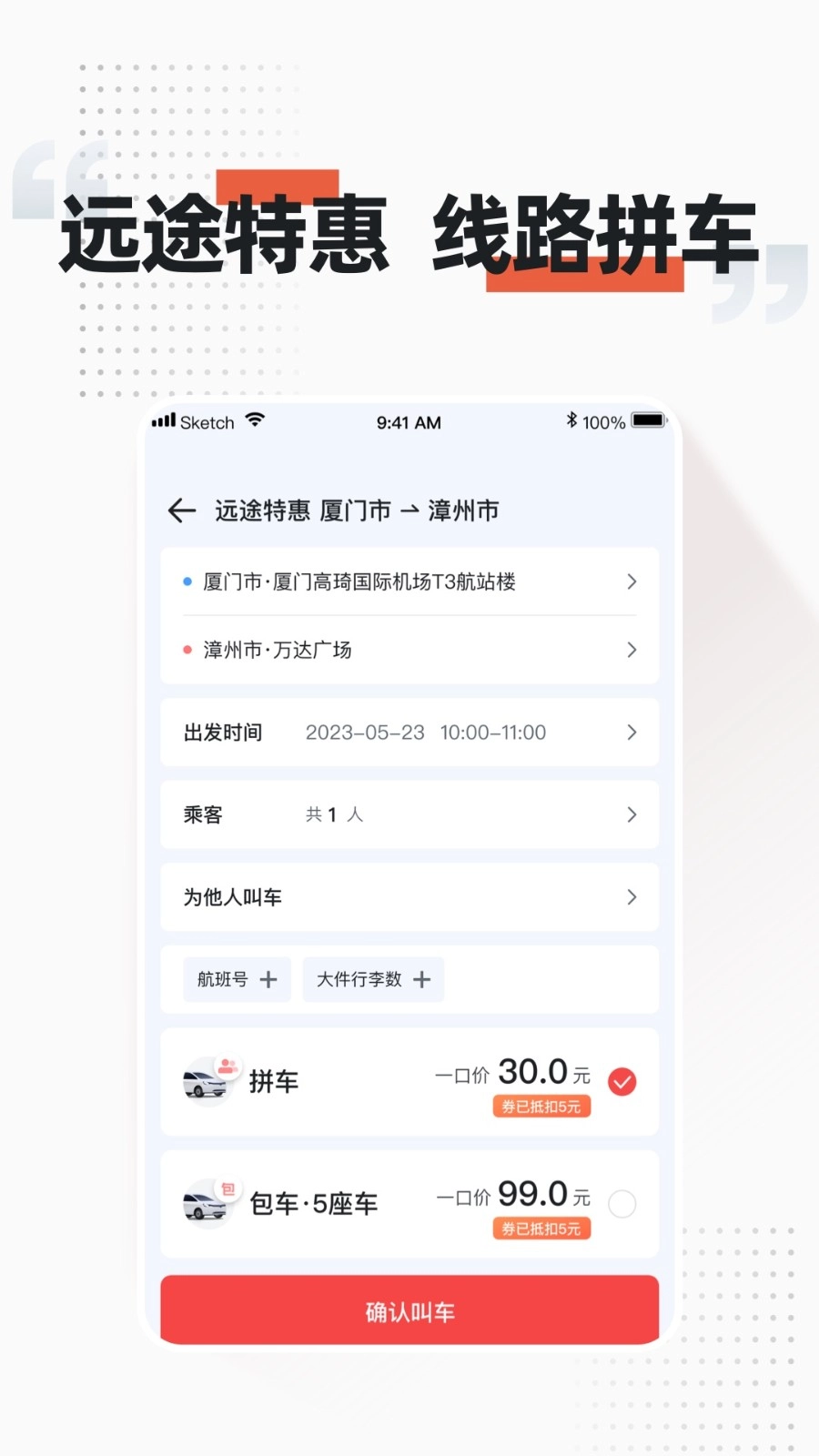 2、选择对应拼车人数,确认信息后提交叫车请求即可。