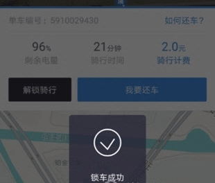 2、成功扫码后,会弹出一个关于车辆信息的新窗口,点击【开锁】成功解锁助力车。