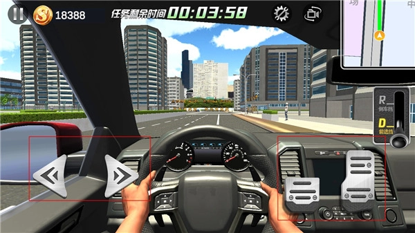 打开游戏后,首先能感受到的是车辆在油门和刹车的操控反馈上还原度很高,真实感十足。它的档位设计采用了自动挡的逻辑,只有前进和倒车两个档位可选。倒车操作需要先挂入倒挡,之后再踩下最右侧的油门踏板才能完成。