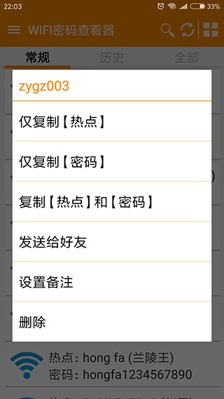 现在能看到刚连接的WiFi密码了,原理是读取手机里存储的WiFi密码记录。