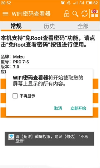 请授予WiFi密码查看器权限,并同意其写入手机存储的授权。
