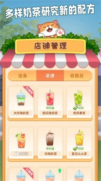 具体的奶茶配方需解锁获取,随着配方不断增加,能体验到更多样的乐趣。