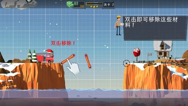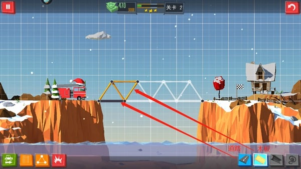3、每道关卡都有不同的限制,如何在诸多限制下,完成造桥这项任务,快发挥你的想象力吧