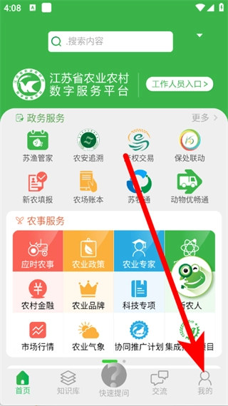 打开农技耘,点击底部导航栏我的,进入我的页面。