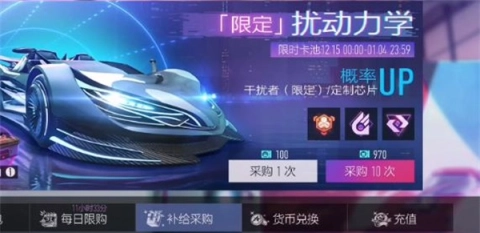 玩家可通过补给采购进行氪金抽奖,获取赛车的方式有100点券单抽和970点券十连抽两种,提供了多样化的选择。
