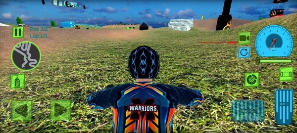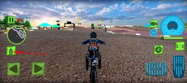 1、打开越野摩托模拟器最新版本,左下方的两个按键分别是控制摩托的左右方向;