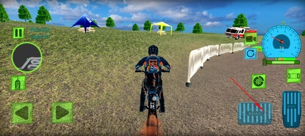 2、右下角的两个按钮分别用于控制摩托车的前进和后退;