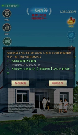 前期可依据各等级对应的目标,分阶段推进科室建设与科研升级,尽量避免跨级操作,毕竟越级所需的资金成本与当前医院等级的收入水平并不适配。
