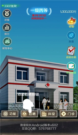 游戏内科室设有县级、市级、省级、国家级、世界级五个等级,科室的等级会对病人数量与疾病等级产生影响,而科室等级能够通过扩建来提升。