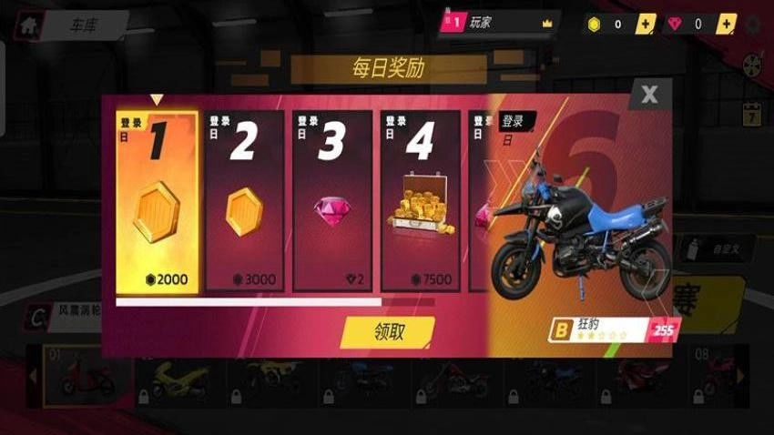 玩家登录游戏后,不仅能领取每日奖励,还可以解锁全新的摩托车。