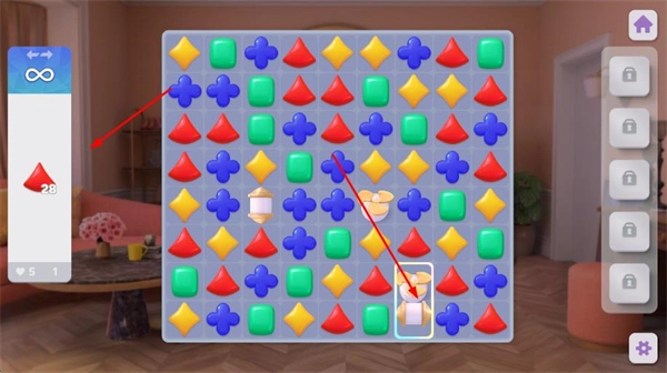 消除过程中会出现特殊元素和道具,合理利用它们能帮你更快完成消除任务,左侧可以查看本次关卡的具体任务要求。