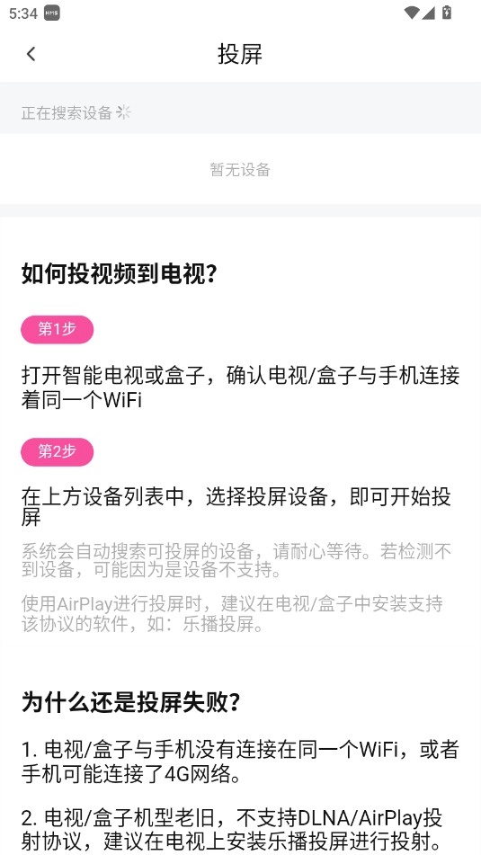 3、确保手机和电视连接的是同一WiFi,进行设备搜索