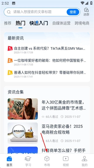 在海鸥联盟首页,点击底部的市场选项,即可进入产品市场页面。