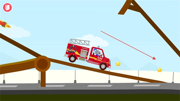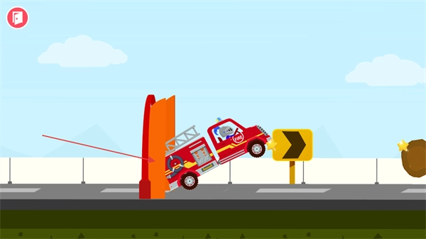 借助赛道上的坡道与障碍物,使消防车跃起腾空,收集更多星星,达成关卡挑战。