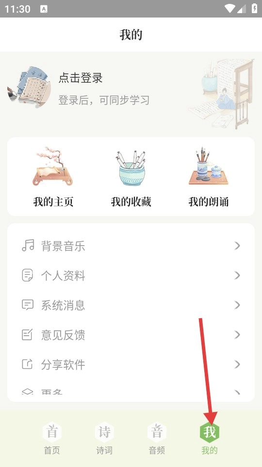 4、进入【我的】,可点击登录,同步学习进度,也可设置各种功能。