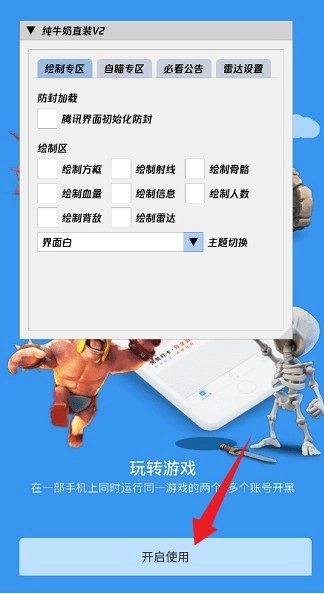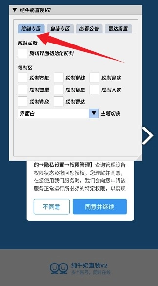 5、来到绘制专区,可以进行绘制方框,绘制射线,绘制雷达,绘制血量等。以及可以勾选【腾讯界面初始化防封】