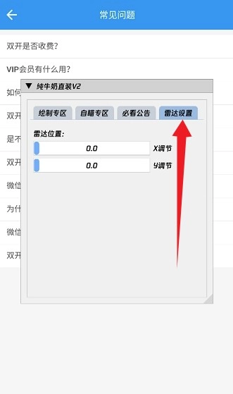 6、又比如【雷达设置】,可以通过设置【x,y的值】来确定雷达的位置