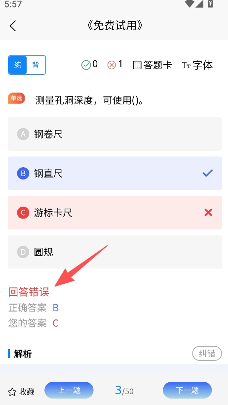 答题反馈十分及时,用户完成题目后能立刻看到对错结果、正确答案以及详细解析,从而快速明确自身知识漏洞,大幅提升查漏补缺的效率。