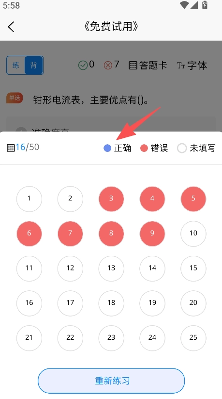练习结束,查看答题情况,可重新练习。