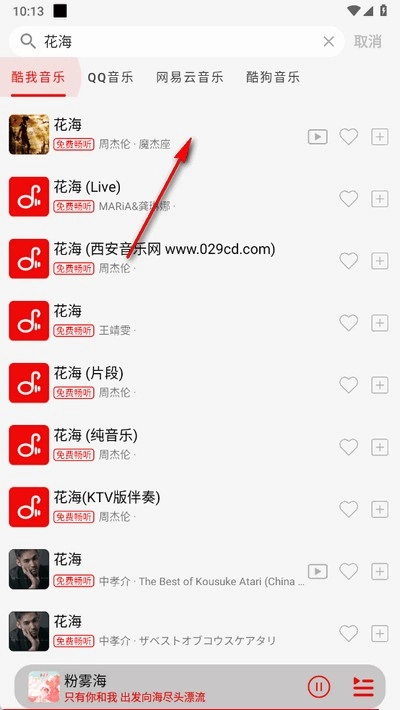 3、在搜索结果里挑选出你喜爱的歌曲,点击播放按钮,就能免费畅快收听了。