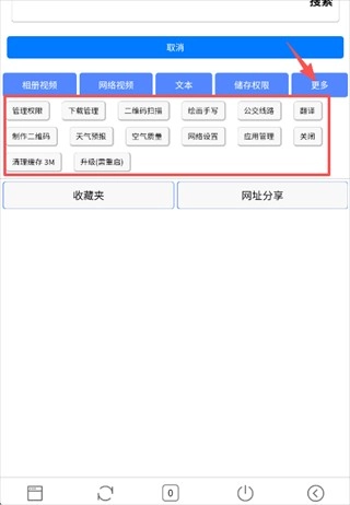 3、点击更多功能,还提供管理、二维码扫描、制作二维码、公交线路、翻译等功能