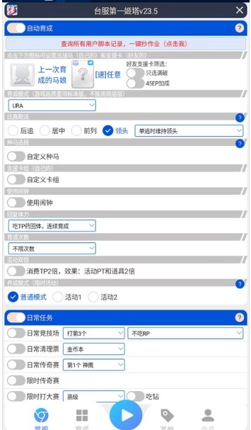 b.优先度:高优先度=前期多点,中优先度=正常点,低优先度=前期少点,仅点多羁绊=3个羁绊以上才参与判断(常用于不想训练,但前期需要拉羁绊的项目,比如根性或智力),后面两个输入框后面再具体解释,可以先不用管