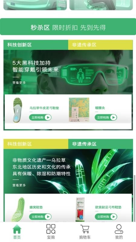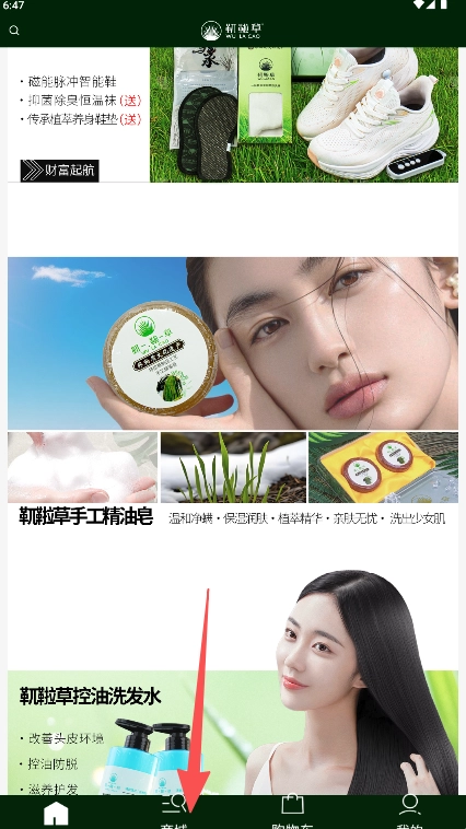 《靰鞡草》的界面设计简洁而自然,核心突出健康养生理念与生活好物推荐。平台主打磁疗脉冲智能鞋、负离子恒温袜等特色产品,着重强调其在改善体质与提升舒适体验方面的优势。日用品系列涵盖植萃手工皂、控油洗发水等品类,始终秉持温和护理的原则。页面布局清晰明了,顶部设置了搜索栏与首页快捷入口,底部导航栏整合了商城、购物车等实用功能,便于用户轻松浏览和选购商品。整体内容聚焦产品的实用功效,旨在为追求品质生活的消费群体提供丰富多样的选择。