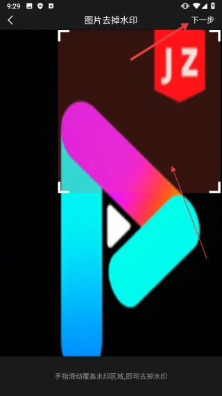 在图片去水印的编辑界面中,滑动“覆盖水印区域”选项后,点击“下一步”按钮,即可进入图片预览界面。