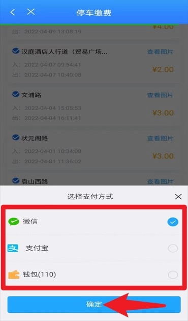 勾选需要缴费的订单后,可选择微信、支付宝或钱包余额作为支付方式,点击确定按钮就能完成缴费流程。